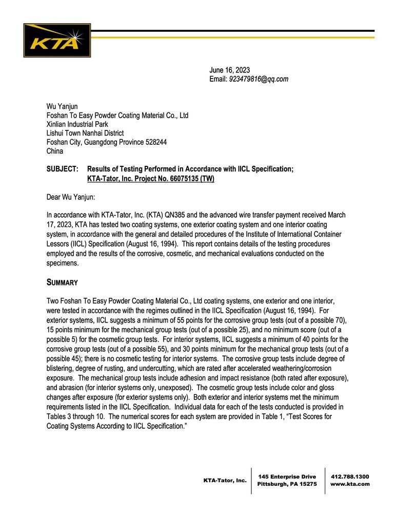 66075135 Foshan To Easy Powder Coating Material Co., Ltd Report (TO)